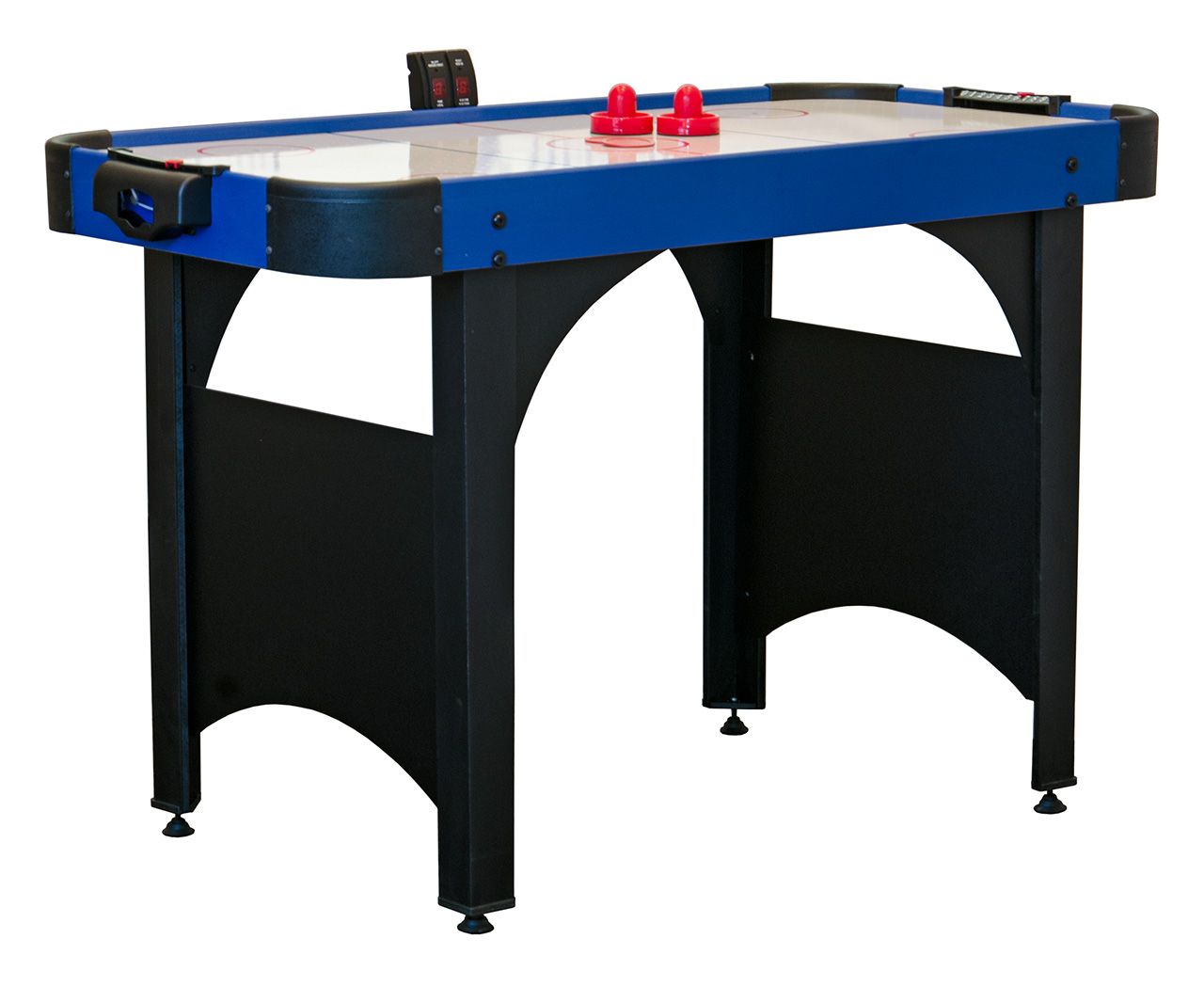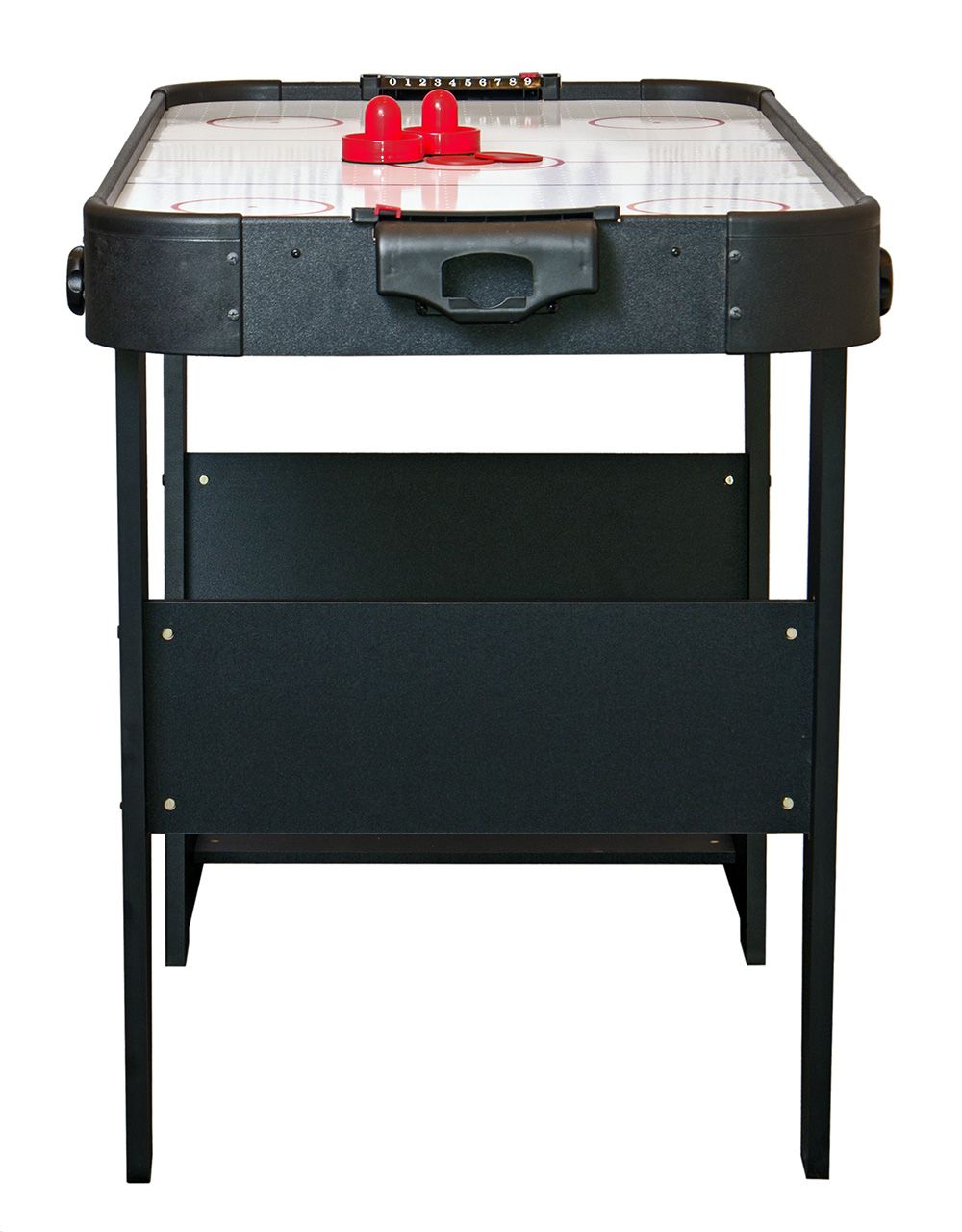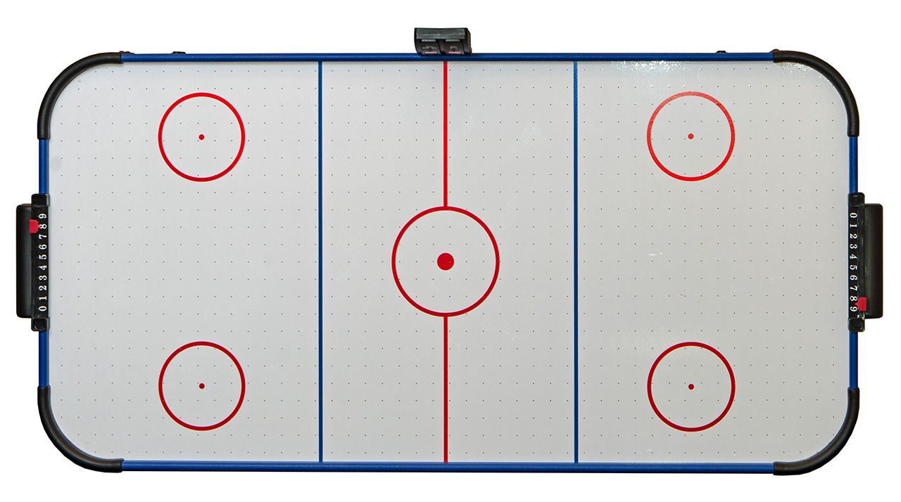 Компактный стол для аэрохоккея, выполненный из шлифованного МДФ и глянцевого ПВХ.