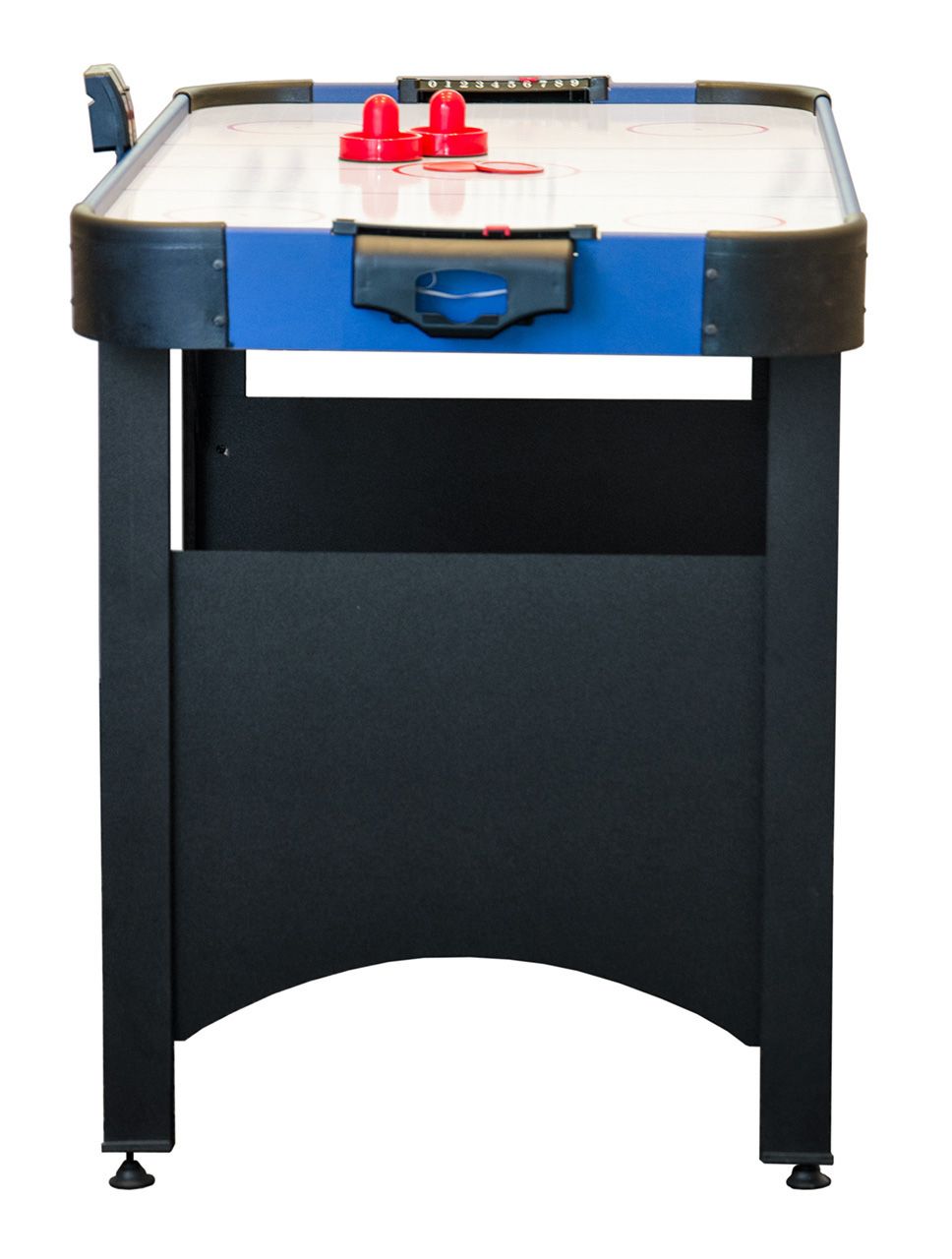 Air Attack 4ft – популярная модель домашней серии в ярком дизайне, созданная для ярких турниров с друзьями и семьёй. Имеет уникальный дизайн игровой поверхности, приподнятые бортики и два механических счётчика очков. Небольшой, но мощный мотор позволяет шайбе легко и быстро скользить по игровому полю. Организуйте турниры с семьёй и друзьями и наслаждайтесь часами веселья вместе! Аэрохоккей отлично тренирует реакцию и координацию рук и глаз, а легкий вес позволяет легко перемещать его в помещении.