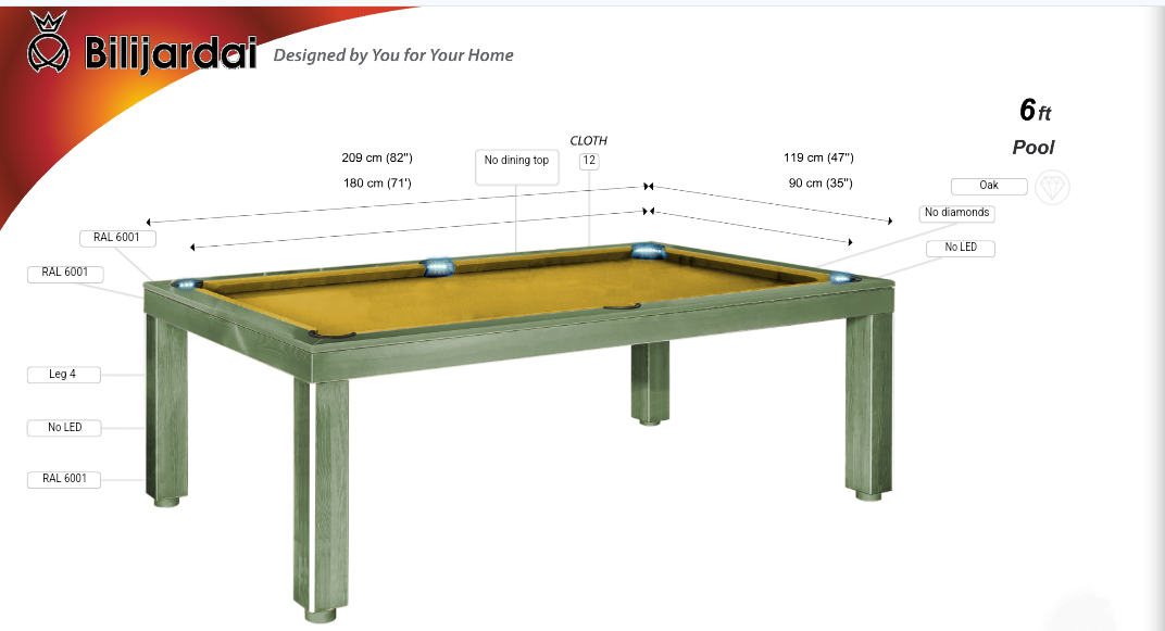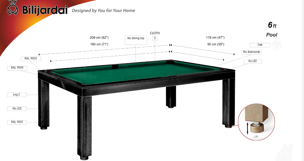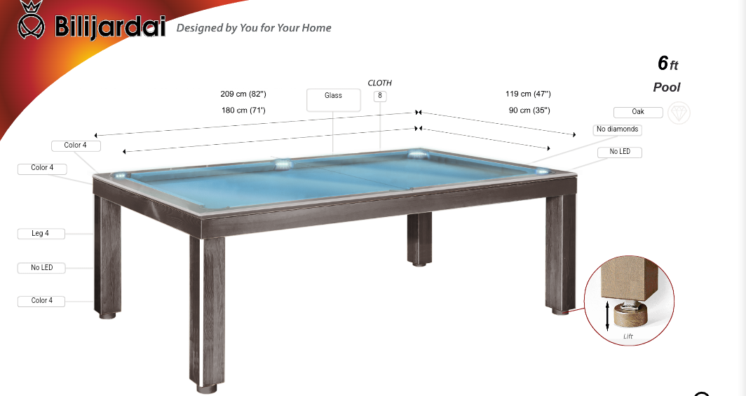 Вы также можете выбрать цвет ткани (цена зависит от типа и цвета). Для размещения столешницы на этом столе предусмотрен механизм серии Dino: специальные держатели для столешницы во время игры в бильярд.