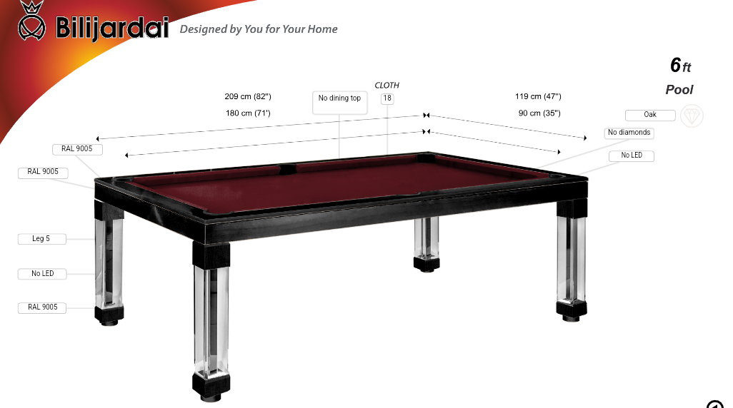 Лучшие комплектующие. Сукно "Ivan Simonis", бортовая резина "Artemis", все варианты отделки, включая отделку дубом, уже в базовой комплектации.
